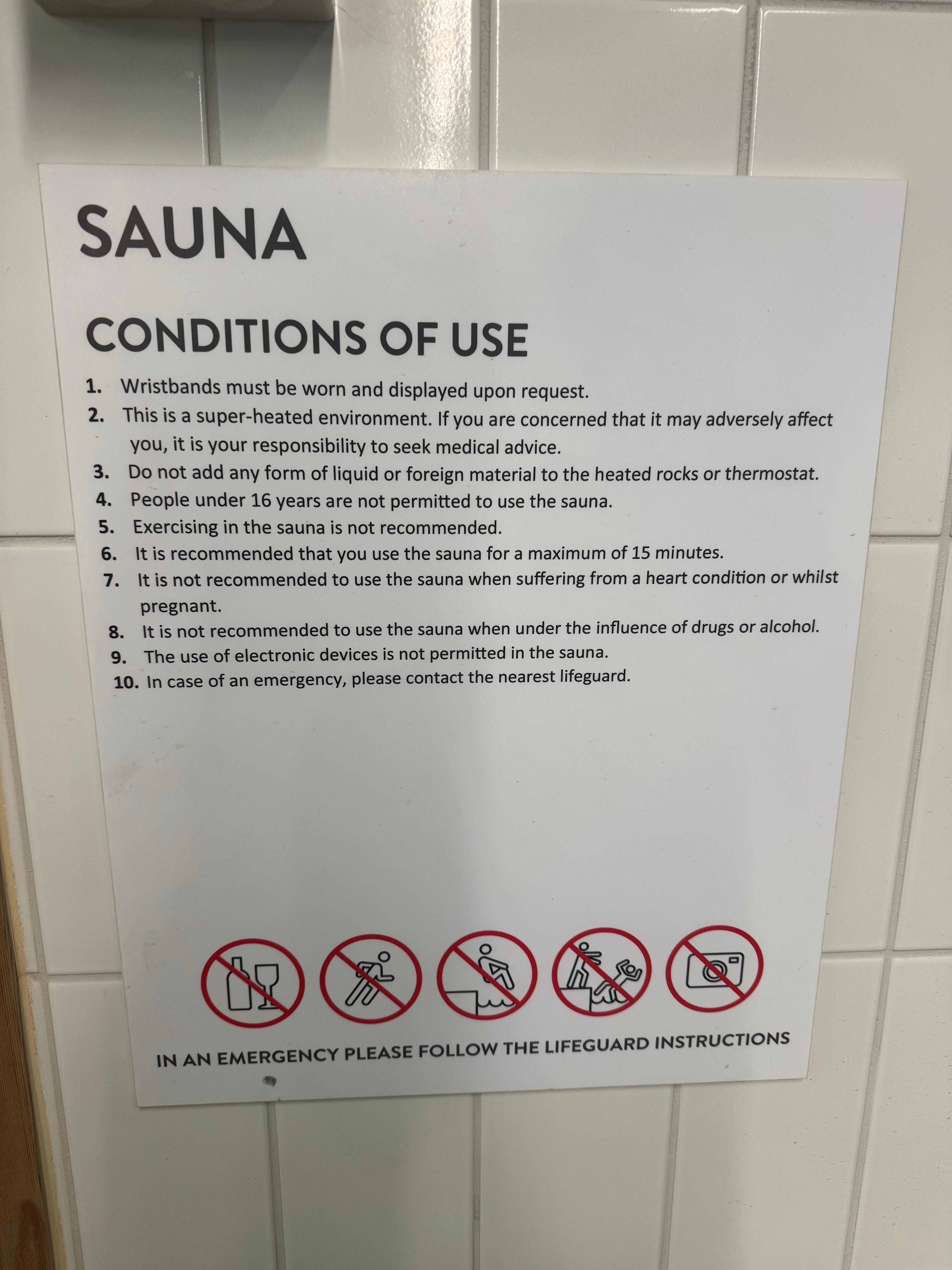 This for me, unfortunately, means dragging my sweaty post run arse to the public swim centre every damn day to sit in the sauna.